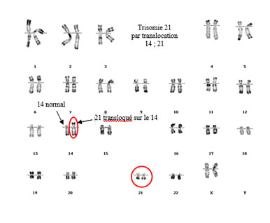 S’il y a suspicion de trisomie 21, les médecins procèderont à un caryotype du sang du bébé (une prise de sang) qui révélera le nombre de chromosomes et de poser un diagnostic.